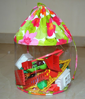 This one made following the tutorial Clear Toy Storage Bags (with drawstring closure).